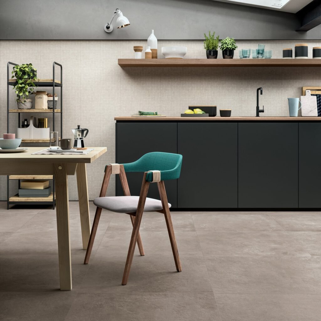 Ragno creates ceramics with all the appeal and versatility of contemporary architecture’s most popular material: concrete. Boom is the porcelain stoneware with a strong, forthright character that gives personality to interior design. The two surface finishes for indoor/outdoor use provide an attractive visual continuity. The deep colours are designed to dialogue with trendy public locations. Small mosaics on the walls and large modules on the floor illustrate the versatility and completeness of this ceramic project.